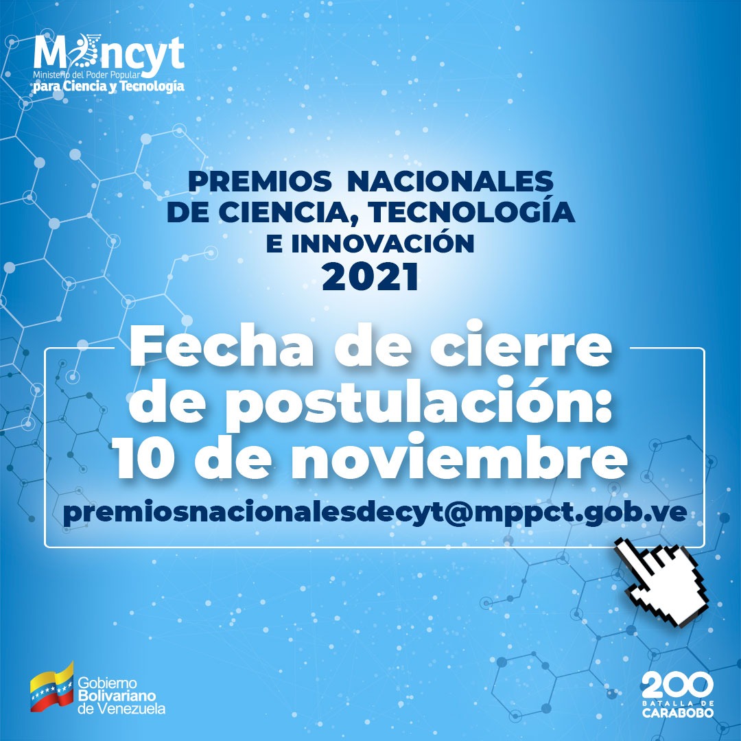 Los Premios Nacionales de CTI 2021 están dirigidos a venezolanos/as y extranjeros residenciados en el país que participen en la generación de conocimientos y su aplicación a la solución de las necesidades colectivas para la vida.